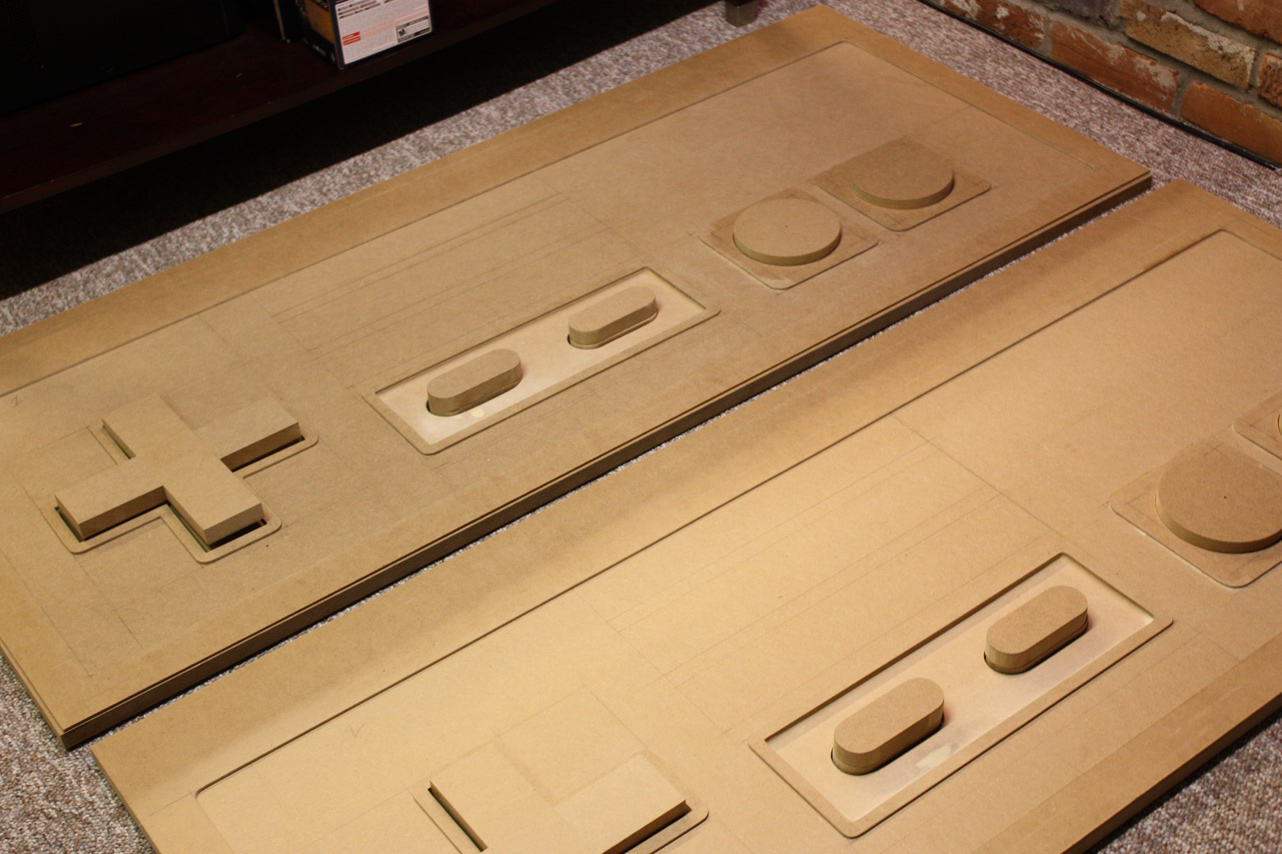 Finally we’ve cut out all of our button holes, buttons, and frames. We’ve also recessed the Start and Select area and rounded some appropriate corners. Here’s a shot of our progress!: