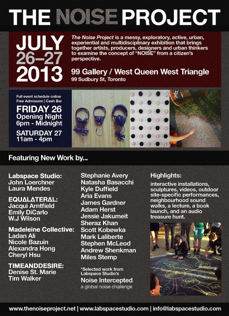 In relation to this project, Kyle Duffield is part of The Nomadic Noise Residency, which consists of a super cool multidisciplinary crew of people that are combining together to create artistic projects inspired by noise. Exhibited work will be in the form of site specific installations, performances, sound based works, web-projects, apps, interventions, research papers, etc. The residency itself consists of group experiences such as urban sound adventures, social interventions, workshops and discussions for the purpose of creating final projects for exhibition. The residency is one of three parts of a larger endeavor entitled The Noise Project.