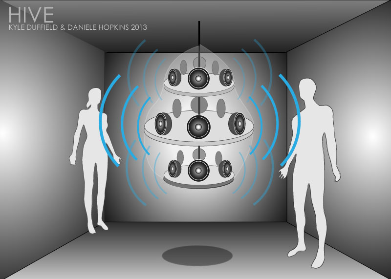 Hive is being presented at The Noise Project Exhibition this Friday, so here’s some documentation of our speaker wiring process, with a more detailed and explanatory post to come after the show about what we’ve learned about speakers and their functionality, as well as some shots of our sculpture’s construction. Neither of us came into this project with much experience working with speakers, or even particular knowledge of how to make it all work, so it’s all been a fun learning process that we’d like to share.