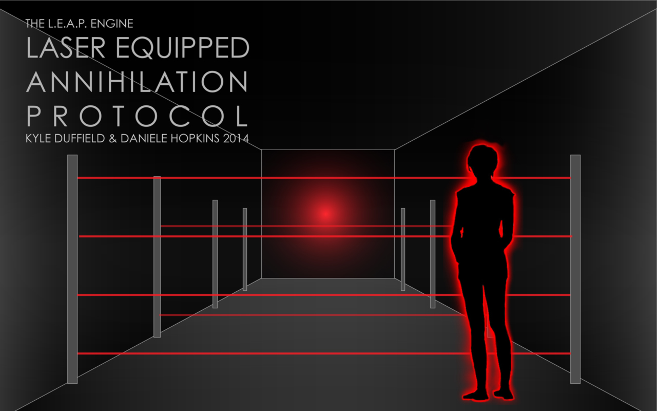 Daniele Hopkins and Kyle Duffield diagram for their laser-avoidance installation game, The Laser Equipped Annihilation Protocol (or The L.E.A.P. Engine)